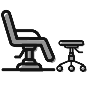 Estación de trabajo equipadas con, cama para tatuar, banco, reposabrazos, lampara, mesa de servicio y Contenedores de residuos biológicos.